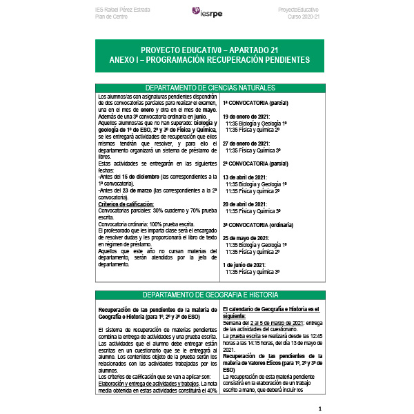 En el siguiente documento podréis encontrar las instrucciones de los diferentes departamentos didácticos en relación a la recuperación de áreas no superadas de [...]